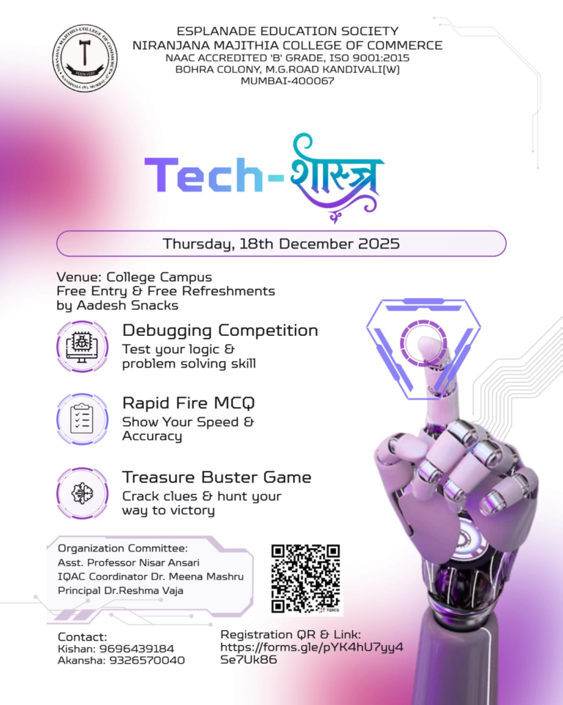 The event was organised by the Core club volunteers Rakaesh Vishwakarma and Nitin Tiwari for all the students of BCom, BMS and B.Sc-IT on 27 July 2019.