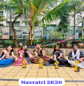 The program began with a brief introduction highlighting the significance of Navratri and the importance of Garba as a devotional dance dedicated to Goddess Durga. Soon, the atmosphere came alive with rhythmic folk music, synchronized claps, and coordinated Garba and Dandiya steps. Students formed lively circles and performed with great energy, grace, and enthusiasm, reflecting cultural pride and unity.